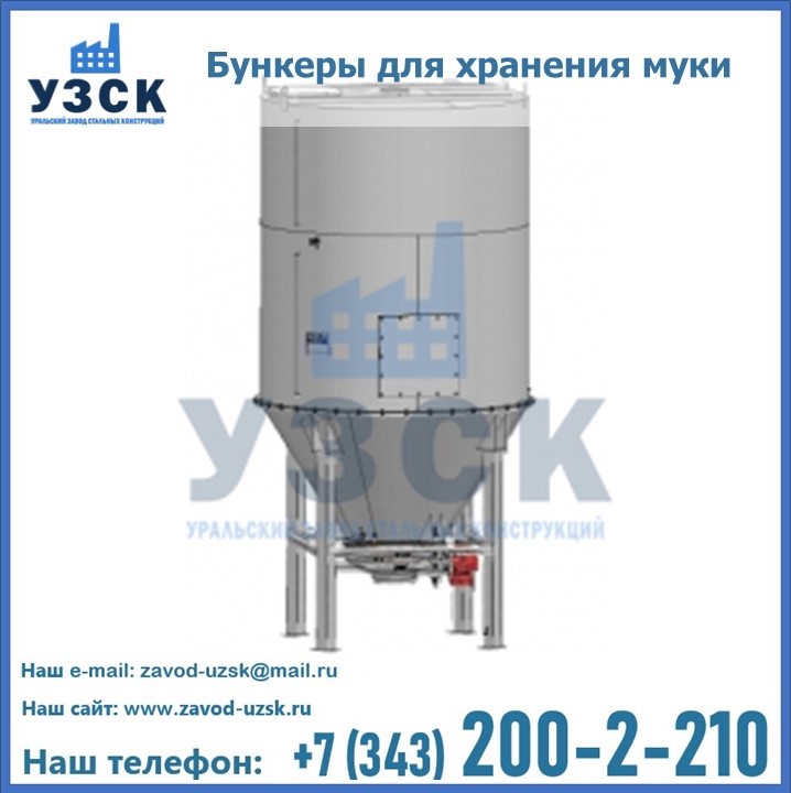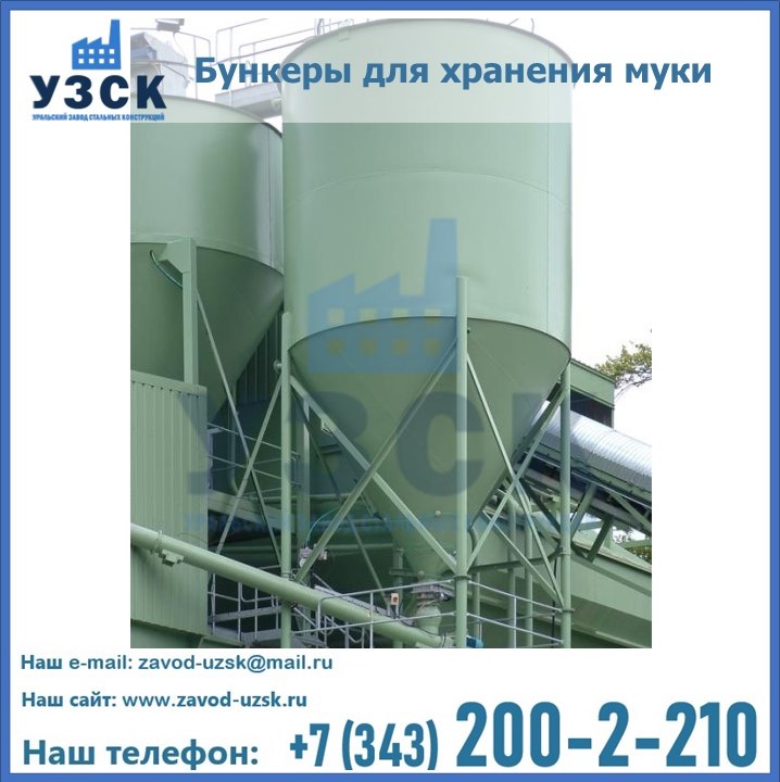 Завод «УЗСК» в Талдыкоргане проектирует, производит и поставляет целевое оборудование, в том числе, бункеры для хранения муки и прочих сыпучих материалов.