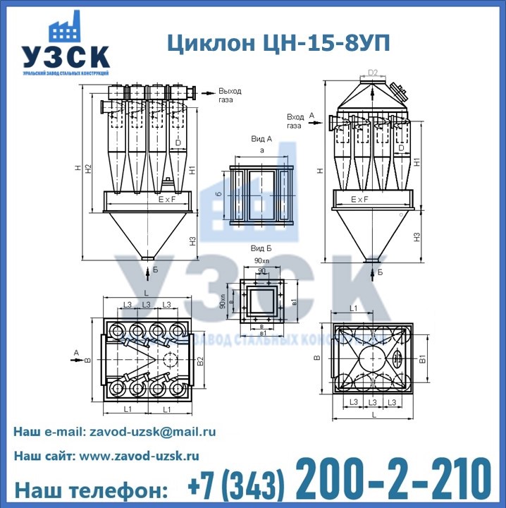 Завод «УЗСК» в Талдыкоргане предлагает большой выбор циклонов ЦН-15-500×8УП и прочих устройств, полностью укомплектованных и готовых к эксплуатации. Мы гарантируем соответствие оборудования всем требованиям ГОСТ и ТУ, износостойкость и высокую производительность предлагаемого оборудования. Уральский Завод Стальных Конструкций изготавливает и продает надежное, эффективное и производительное оборудование, имеющее длительную гарантию и большой эксплуатационный ресурс. Если требуется изготовить циклон нестандартных размеров, то такой вариант выполнения заказа тоже предусмотрен, так как предприятие имеет собственные производственные площади и надежных поставщиков. На все поставляемое или производимое оборудование имеются чертежи и прочая техническая документация. Заказать и купить циклоны или прочее оборудование высокого качества и по доступной цене можно через наш сайт или по указанному в разделе «Контакты» телефону.