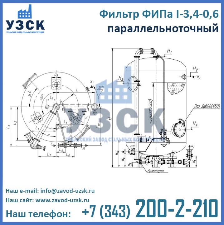 Производитель фильтров ФИПа параллельно-точных завод УЗСК предлагает два варианта комплектации ФИПаI 3,4-0,6 в Талдыкоргане: