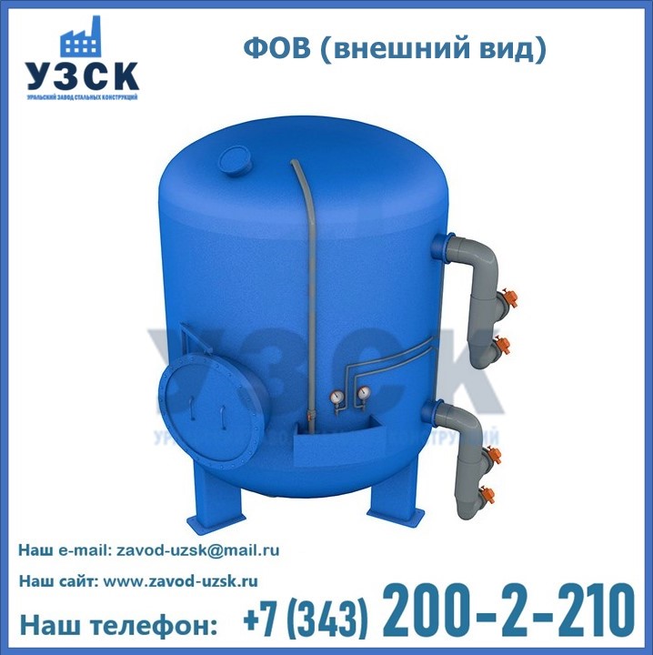 Удаление взвешенных веществ различного уровня дисперсности из рабочих жидкостей эффективно проводит фильтр осветлительный типа ФОВ (скорый или механический) — вертикально-цилиндрической формы установка, разработанная для систем водоподготовки различного класса. Оборудование представляет собой однокамерный агрегат для очистки воды рекомендованный для применения на станциях очистки стоков, в коммунальных котельных, на ТЭЦ, в промышленных отопительных системах и пр. Заказать производство ФОВ фильтров предлагает наш Уральский завод стальных конструкций в Талдыкоргане. У нас можно купить фильтрационное оборудование различного класса и типа, в том числе фильтры ФОВ из нержавеющей стали.