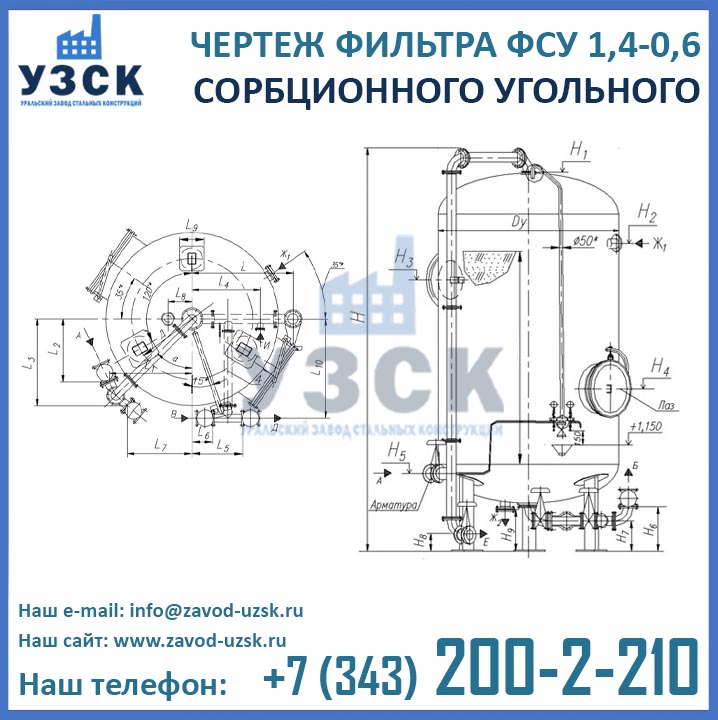 Если вы ищете фильтры ФСУ-1,4-0,6 в Талдыкоргане от изготовителя, то Вы на правильном пути! Уральский завод стальных конструкций – непосредственный производитель сорбционных фильтров ФСУ, предлагающий самые выгодные цены на ФСУ-1.4-0.6 в Талдыкоргане. По окончании процесса производства угольные фильтры проходят гидравлические испытания пробным давлением 0,9 МПа на аттестованном гидростенде, находящимся в собственности завода УЗСК. Мы гарантируем высокое качество выпускаемой продукции, и в этом уже убедились ведущие предприятия промышленного сектора России и стран ЕАЭС (см. раздел «Наши клиенты»).